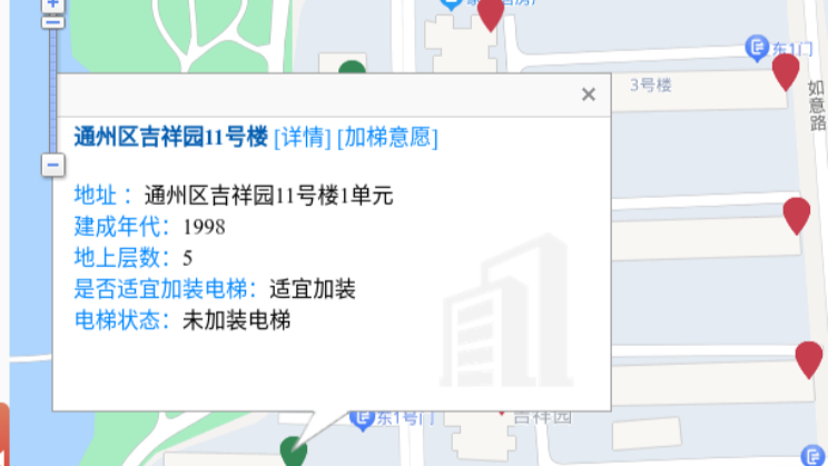 點(diǎn)擊地圖即可查看樓棟加梯的相關(guān)信息