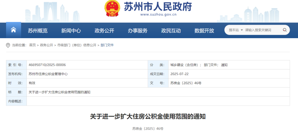 8月12日,蘇州市住房公積金管理中心發(fā)布了《關(guān)于進一步擴大住房公積金使用范圍的通知》,自9月1日起正式施行。