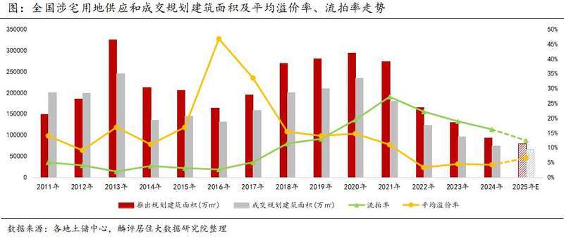 剛剛過(guò)去的2024年,全國(guó)土地市場(chǎng)供需兩端延續(xù)縮量態(tài)勢(shì),溢價(jià)率低位徘徊,流拍率雖有下降但仍處于較高位。據(jù)機(jī)構(gòu)統(tǒng)計(jì),2024年全國(guó)住宅用地成交規(guī)模降幅超兩成,土地出讓金僅為2020年高點(diǎn)四成左右。聚焦高能級(jí)城市拿地投資,成為眾多房地產(chǎn)企業(yè)的共識(shí)。