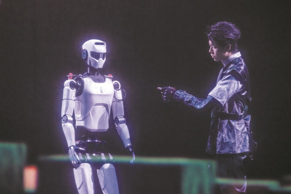 這是發(fā)生在中國大戲院長三角城市戲劇節(jié)中的最“科幻”一幕,國內(nèi)領(lǐng)先的機器人走出實驗室和展廳,以接地氣、親和的方式來到普通人身邊。面對這樣的場景,人們不再那么陌生——2025春晚上,張藝謀導演的《秧BOT》讓人形機器人略顯滑稽地扭起秧歌;上半年,半程馬拉松也迎來人形機器人“跌跌撞撞”的身影?!拔覀冊谔剿饕环N可能性,試著模擬發(fā)生在未來的場景?!薄毒尬镏恰匪囆g(shù)總監(jiān)、上海戲劇學院藝術(shù)科技與管理學院副院長沈倩對記者說,“無論對于機器人還是演藝產(chǎn)業(yè)來說,都具有破圈的意義?!闭\然,機器人仍在亦步亦趨地努力跟上人類的節(jié)奏,但其不斷前進的腳步已經(jīng)令人激動。面對“人機共生”的時代命題,上海邁出了全國舞臺實踐的第一步。
