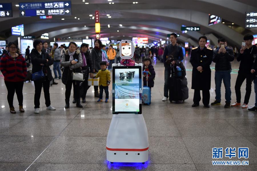 2月1日,旅客們在廣州南站與智能機(jī)器人“小璐”對話。當(dāng)日,一臺(tái)名叫“小璐”的智能機(jī)器人亮相廣州南站,吸引了大批旅客的圍觀,大家紛紛嘗試與“小璐”對話,向她咨詢列車時(shí)刻、購票信息、天氣情況等問題,“小璐”不僅可以用甜美的女聲一一作答,還可以在接收到語音指令后,為旅客“唱歌”和“跳舞”。據(jù)了解,使用智能機(jī)器人服務(wù)旅客是廣州南站在今年春運(yùn)中的新嘗試,如果試用效果良好,今后有望在車站中看到更多智能機(jī)器人的身影。新華社記者 梁旭 攝