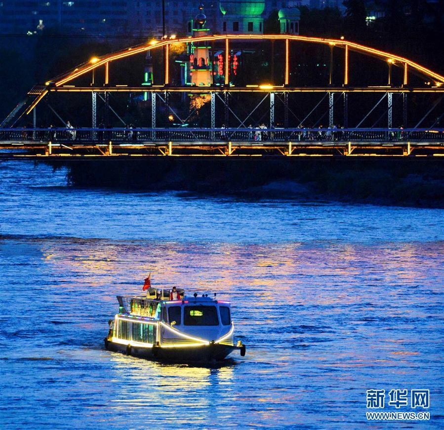 6月14日,一艘游輪從黃河蘭州段中山橋下穿過(guò)。自6月12日起,蘭州黃河游輪夏季夜航航線正式開通。據(jù)了解,作為黃河蘭州段水上旅游重點(diǎn)線路,該航線由蘭州市城關(guān)區(qū)蘭州港碼頭和白塔山碼頭始發(fā),每晚20時(shí)起開行,全程約6公里,運(yùn)行時(shí)長(zhǎng)50分鐘左右。游客可以乘坐豪華游輪欣賞黃河夜景,感受蘭州黃河風(fēng)情線別樣魅力。新華社記者 陳斌 攝
