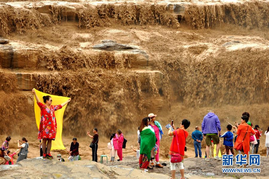 受上游強(qiáng)降雨影響,黃河壺口瀑布水勢大漲,主副瀑布連成一片。