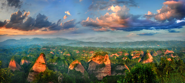 萬佛山地處云貴高原向南嶺山地的過渡地帶。經(jīng)數(shù)以億年的流水、風化地質(zhì)作用,逐漸發(fā)育呈現(xiàn)出丹霞赤壁、石嶺、石寨、石柱、石橋、一線天、狹谷、溝巷等奇特的丹霞地貌自然景觀。域內(nèi)丹霞峰林拔地而起,巍巍陣列,尤如一幅天然水墨長卷。登臨萬佛山主峰山頂,俯視峰林,氣勢磅礴,向西南可望海神龜活神活現(xiàn);向北望毛蠟燭峰、天書巖、夫妻巖形象逼真;向南可遠眺將軍山主峰及該將軍山景區(qū)螺絲峰和神仙洞景區(qū)大寨巖主峰及神仙山主峰。群峰列陣,萬佛朝宗,不愧為“丹霞群峰第一山”。
