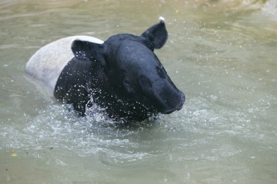 在馬來貘館,飼養(yǎng)員會給場地噴水,增加地面濕度。張耀華介紹,獅子、馬來貘、熊等體型較大的動物都有一個共同特點,喜歡尋找土地濕潤的地方,然后用爪子刨出一個坑,在里面趴著或臥著,等把坑焐熱了,再尋找另外一處濕潤的土地,繼續(xù)刨坑。“這是野生動物特有的避暑方式。我們要求飼養(yǎng)員給場地噴水,實際上是在模擬動物原始棲息環(huán)境,還原動物的生存習性。”