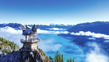 喀納斯湖中心的變色湖是一處特別的景觀,它是天地間的一面鏡子,隨著周圍四季風(fēng)景變換而呈現(xiàn)不同顏色。五月還是青色,六月則轉(zhuǎn)藍(lán)綠,七月乳白色加入,八月墨綠,九月、十月如翡翠一樣色彩斑斕,十一月冰雪封湖一片雪白,至來年四五月又是一個輪回。但八月初,喀納斯湖景區(qū)海拔1400米以上便可能降雪,雪期會長至下一年六月,因此,游客要想賞喀納斯的美,六月和七月是最佳旅游時間。有許多游客是穿羽絨服而來,拍照時脫下外套,潔白的裙子映在湖光山色間,說一句仙女之姿,絲毫不為過。