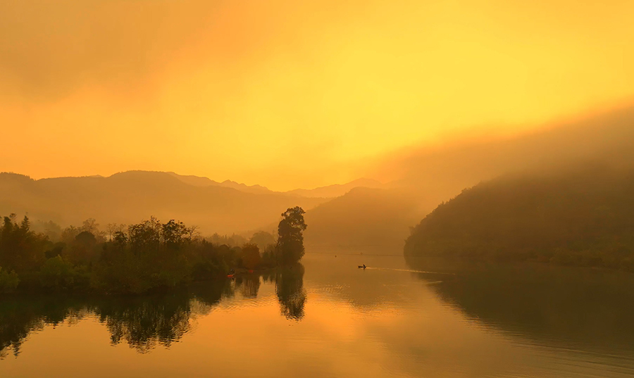 10月29日,在安徽省池州市的秋浦河畔,朝霞與水面相映成趣,泛舟秋浦河仿佛置身仙境。秋浦河是長(zhǎng)江支流,風(fēng)光秀美,因唐代詩(shī)人李白的《秋浦歌十七首》等詩(shī)作而聞名。新華網(wǎng)發(fā)(王帆 攝)