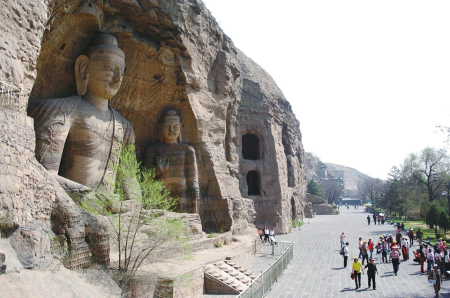 大同云岡石窟依山開鑿,是中外文化、中國(guó)少數(shù)民族文化和中原文化、佛教藝術(shù)與石刻藝術(shù)相融合的一座文化藝術(shù)寶庫。