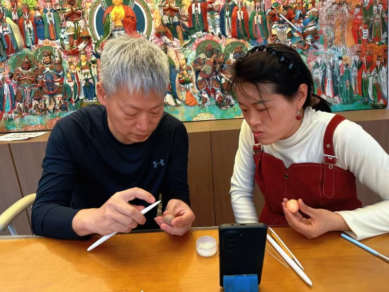 “在這條街上,聚集了很多和我一樣的手藝人。”大海面塑所在的關(guān)帝廟北巷文創(chuàng)街上,一家家非遺店鋪林立——葫蘆烙畫(huà)店鋪內(nèi),忻州市忻府區(qū)葫蘆烙畫(huà)非物質(zhì)文化遺產(chǎn)代表性傳承人李云珍正手拿烙鐵在葫蘆上創(chuàng)作《八駿圖》;“草木染”非遺體驗(yàn)店里,有游客在體驗(yàn)扎染的樂(lè)趣;鋦藝?yán)?,游客圍在忻州市忻府區(qū)鋦瓷藝術(shù)非物質(zhì)文化遺產(chǎn)代表性傳承人王克劍身邊,看一件破碎的瓷器如何經(jīng)過(guò)他的雙手重生……