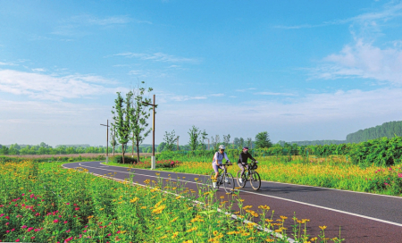 7月1日,自行車運動愛好者在太行一號旅游公路黎城段騎行。該段主線全長118.132公里,串聯起8個鎮(zhèn)、120余個村莊,以“路、景、產、村”深度融合模式,繪就一幅“車在景中行,人在畫中游”的生態(tài)美景。