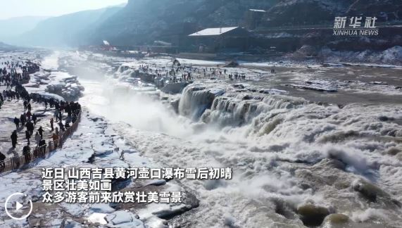 黃河壺口瀑布雪后初晴 美景如畫