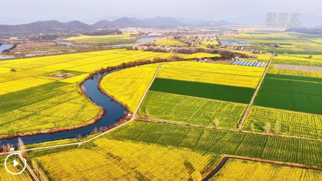 眼下,安徽省池州市東至縣張溪鎮(zhèn)油菜花進(jìn)入盛花期。從空中俯瞰,金色花海如大地鋪就的錦繡絨毯,與青山、村落、溪流相映成趣,勾勒出一幅詩(shī)意盎然的春日田園畫(huà)卷。