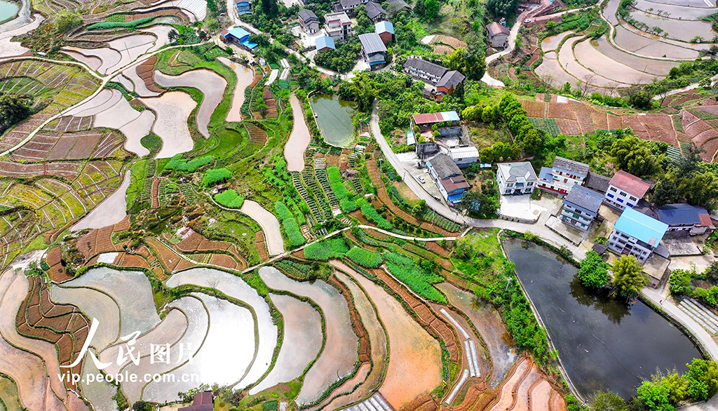 2026年4月1日,重慶墊江縣高峰鎮(zhèn)東風(fēng)村,層疊的梯田與錯(cuò)落的民居,繪出一幅春日田園畫卷。