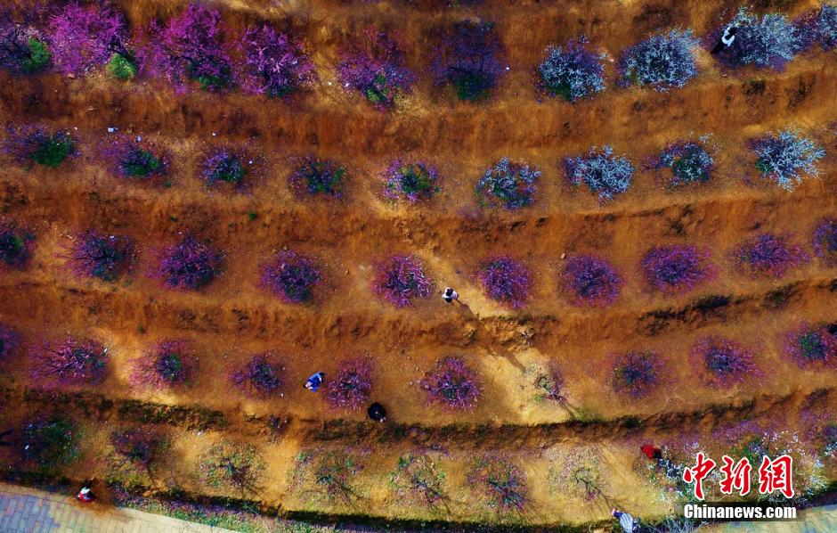 2月20日,三湘大地氣溫逐漸回升,湖南省森林植物園千株梅花競相綻放,眾多游客置身于花海中,與這難得的美景合影留念。 楊華峰 攝