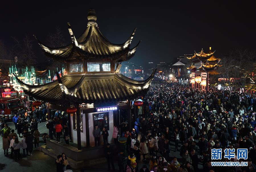壯觀!元宵夜南京秦淮燈會(huì)游人如潮