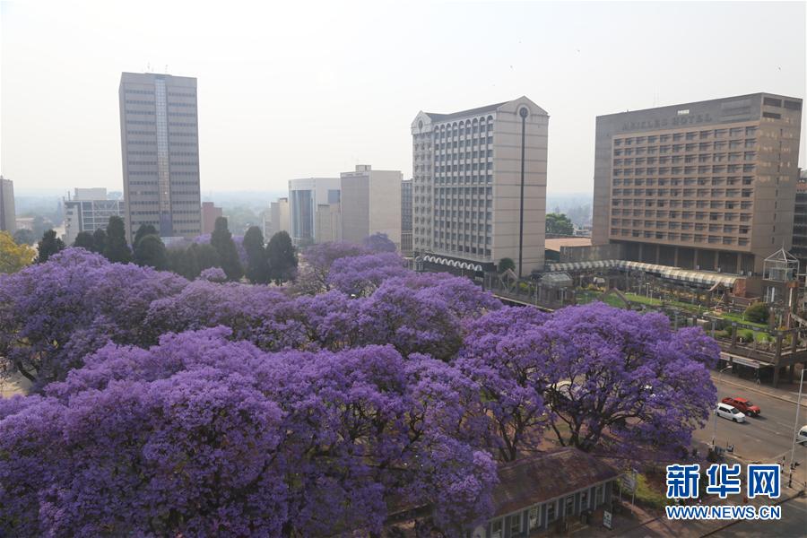 在津巴布韋首都哈拉雷,隨處盛開的藍花楹成為靚麗的風(fēng)景(10月2日攝)。 近日,位于非洲南部的津巴布韋進入春季,全國各地的藍花楹紛紛盛開。津巴布韋風(fēng)光秀麗,擁有維多利亞瀑布、大津巴布韋遺址等5處世界自然或文化遺產(chǎn)。首都哈拉雷有多處神奇的平衡石景觀,同時也因出色的園藝被稱為非洲“花城”。新華社發(fā)(陳雅琴攝)