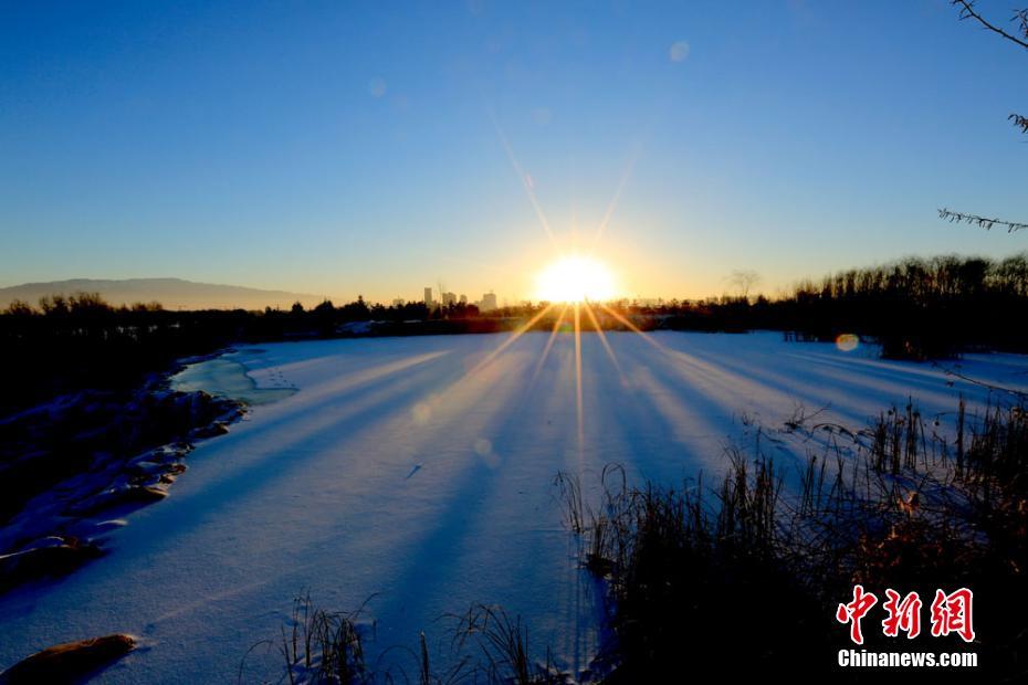 寒冬時(shí)節(jié),雪后初晴,地處甘肅河西走廊的張掖市濱河新區(qū)人工湖被白雪覆蓋,涓涓細(xì)流形成晶瑩剔透的冰瀑、冰掛,成為冬日一景。 陳禮 攝
