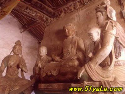 寺前有藏式佛塔一座,高約25米,明代所筑。寺內(nèi)南殿和正殿兩座,均經(jīng)后世修補,唯殿內(nèi)塑像和碑刻仍是唐、宋原物。南殿3間,內(nèi)置彩塑12尊,中為釋迦、文殊、普賢、阿難、迦葉,兩側(cè)有觀音、羅漢、韋馱、脅侍、供養(yǎng)人等,造像風(fēng)格與青蓮寺宋代塑像如出一轍。殿內(nèi)《硤石寺大陪遠(yuǎn)法師遺跡記》唐碑一通,寶歷元年(825年)鐫造,碑頭線刻彌勒講經(jīng)圖,山門、圍廊、佛殿、講壇莫不具備,是研究唐代建筑布局和形制的形象資料。正殿內(nèi)佛壇寬大,上置彩塑7軀,釋迦、文殊、普賢、二弟子及二供養(yǎng)菩薩,皆為唐制,面形豐滿,肌肉健美,身式微屈,姿態(tài)自然。