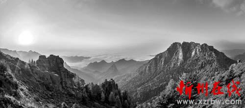 站在峰巔,舉目眺望,但見在初升的陽光照耀下,經(jīng)過大雨洗滌的綠色山峰,呈現(xiàn)出一種奇異的火紅色彩,別有一番神韻。環(huán)顧四周,峰巒重疊,溝壑縱橫,石猴山、臥虎山等30多座海拔2000多米以上的兄弟峰巒,簇擁著陡峭的蘆芽諸山,其勢綿延不絕,氣象磅礴壯觀。云霧在山峰飄蕩,如煙似雨,彌漫四合。尖峭高聳、怪石嶙峋的蘆芽諸山,突出于翻伏騰涌的云霧之上,仿佛蔥蘢茁壯的蘆芽破石而出,生機勃勃,鮮嫩欲滴,翠色宜人。
