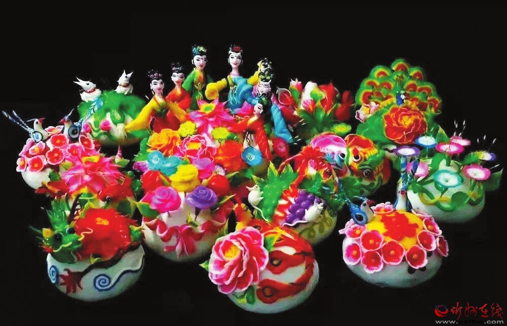 面塑是忻州民間文化最具生命力的工藝品之一,其制作過程十分復(fù)雜,包括和面、蒸面、調(diào)色、塑型等環(huán)節(jié)。制作時講究巧、潤、透、精,需要用刀、剪、板等工具,融實物、雕塑、繪畫、建筑、民間傳說和神話故事等于一體,通過虛實結(jié)合的藝術(shù)方式,制作出豐富多彩、栩栩如生的造型,給人以賞心悅目的藝術(shù)文化享受。
