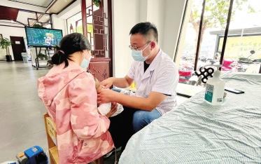 醫(yī)生在給患兒進行推拿