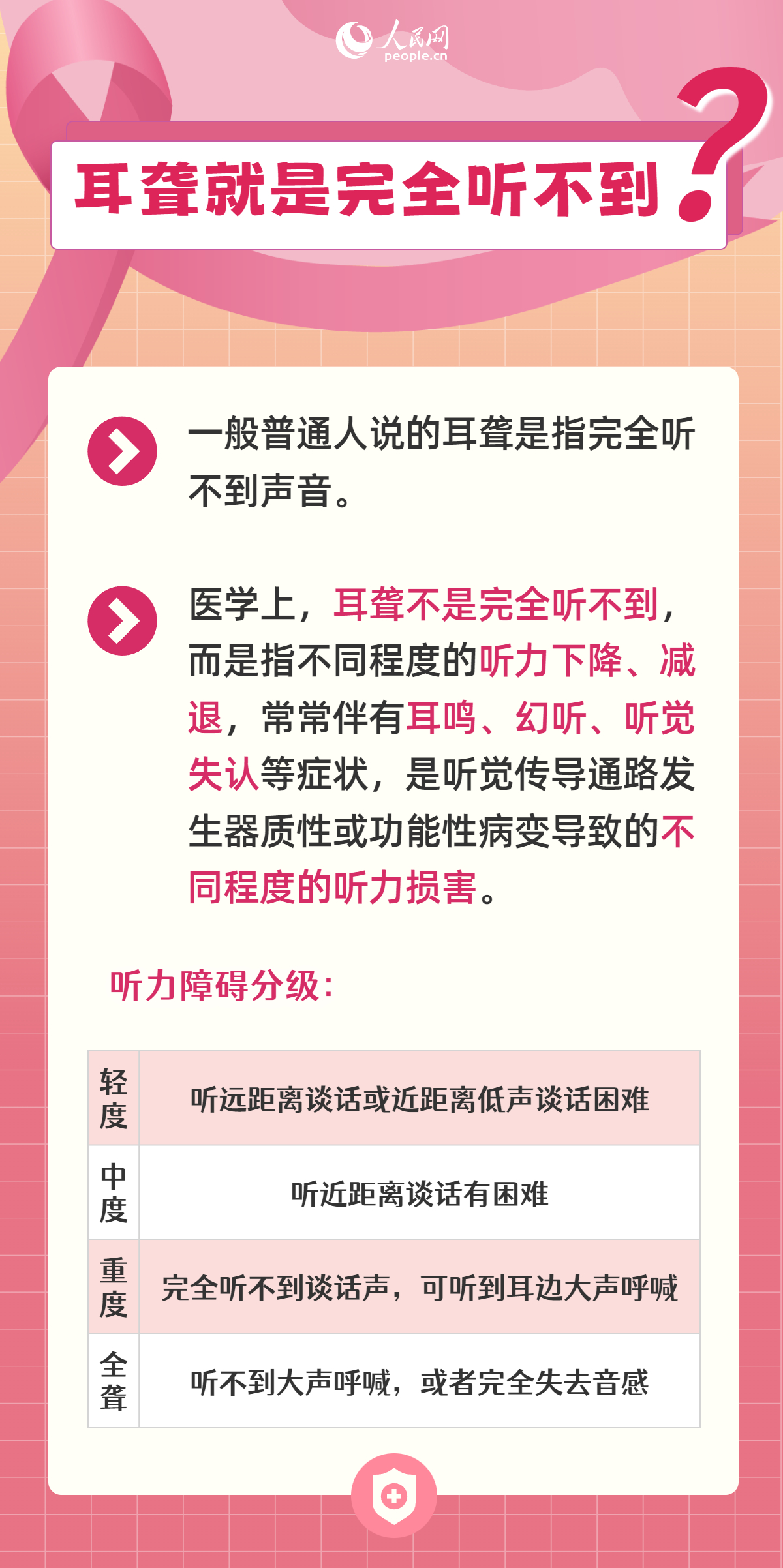 編者按:9月24日是國(guó)際聾人日。耳聾不僅是聽(tīng)覺(jué)能力的損傷或喪失,還會(huì)對(duì)患者的心理健康產(chǎn)生嚴(yán)重影響,甚至可能導(dǎo)致多種并發(fā)癥。那么,耳聾就是完全聽(tīng)不到?耳聾與年輕人無(wú)關(guān)?關(guān)于耳聾,你需要知道這幾點(diǎn)。