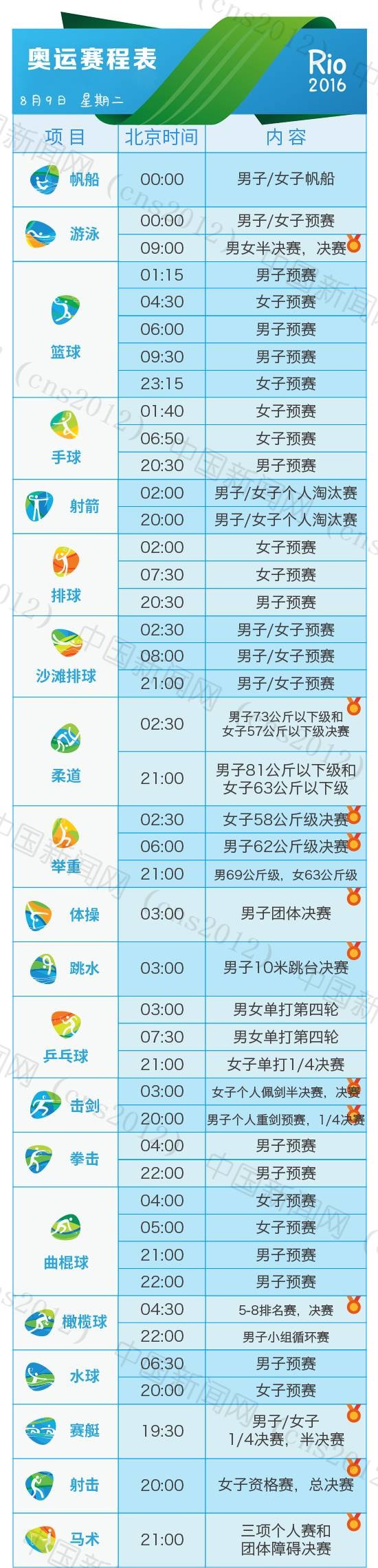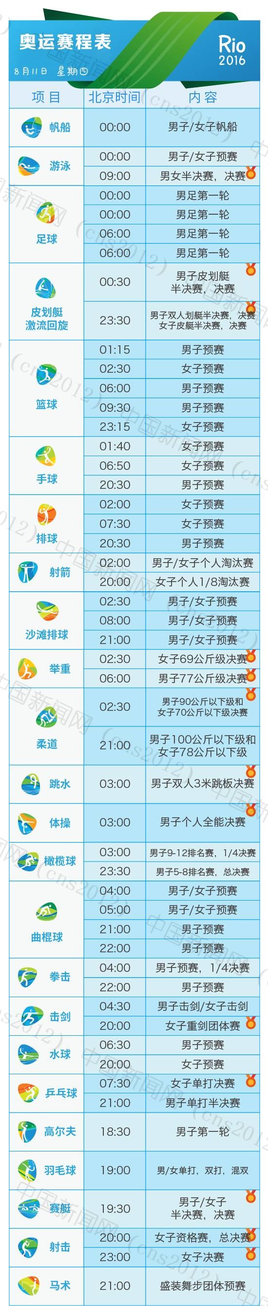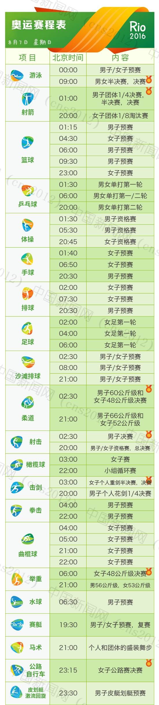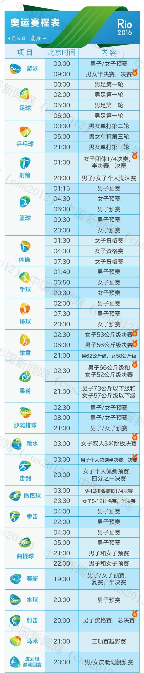 里約奧運(yùn)會(huì)完整賽程表