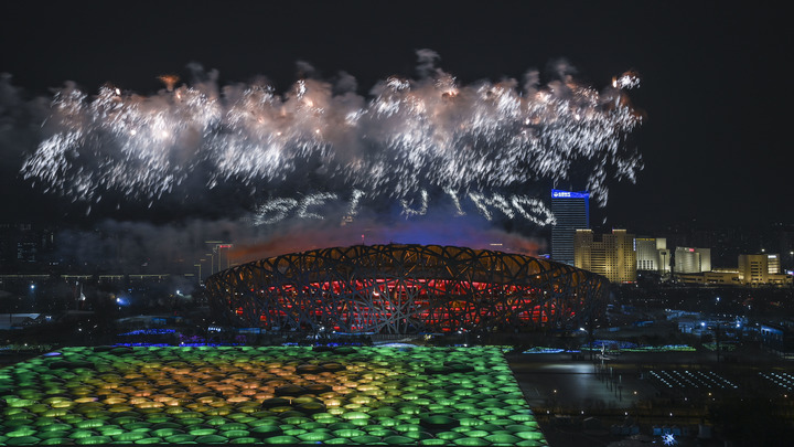 浪漫的焰火騰空而起,“北京2022”在國家體育場上空粲然綻放,時(shí)光的“留聲機(jī)”定格在大地上。