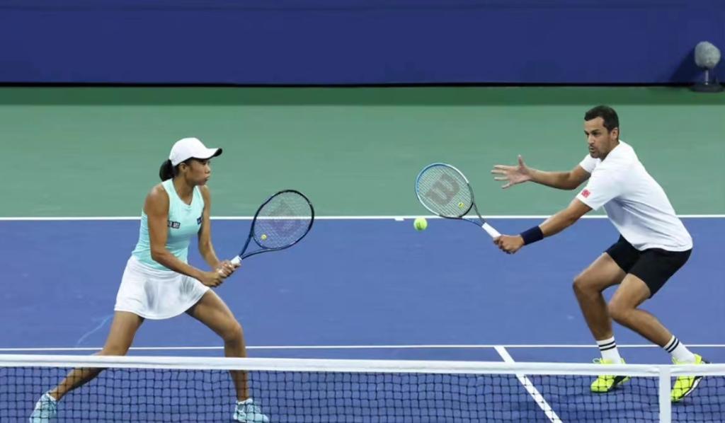 當(dāng)天晚些時(shí)候,張帥又搭檔克羅地亞選手帕維奇征戰(zhàn)混雙八強(qiáng)賽。這對(duì)二號(hào)種子組合前兩盤以7:6(5)、4:6與日本選手柴原瑛菜和克羅地亞選手什庫(kù)戈?duì)柎蚱?,在?0中以10:3勝出,晉級(jí)四強(qiáng)。