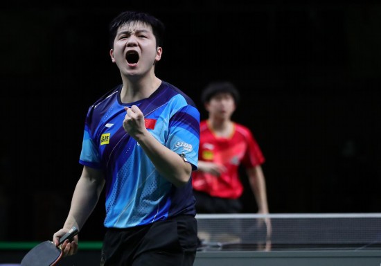 5月28日,樊振東在比賽中慶祝得分。新華社記者 王東震 攝 樊振東表示,成績上自己非常滿意,過程中有很多收獲和不一樣的感受?!半p打與王楚欽配合,還是期待有所突破,這次也是完成了目標(biāo),雙打金牌對中國隊(duì)非常有意義。單打一路走過來,狀態(tài)還是有起伏,隨著比賽的進(jìn)行,自己的狀態(tài)越來越好,在場上的心態(tài)也比前幾次更加成熟。”他說。
