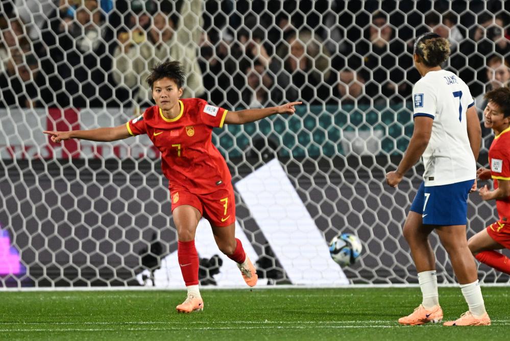 8月1日,中國隊(duì)球員王霜(左)慶祝罰中點(diǎn)球。當(dāng)日,在澳大利亞阿德萊德舉行的2023年國際足聯(lián)女足世界杯小組賽D組比賽中,中國隊(duì)對(duì)陣英格蘭隊(duì)。新華社記者 毛思倩 攝