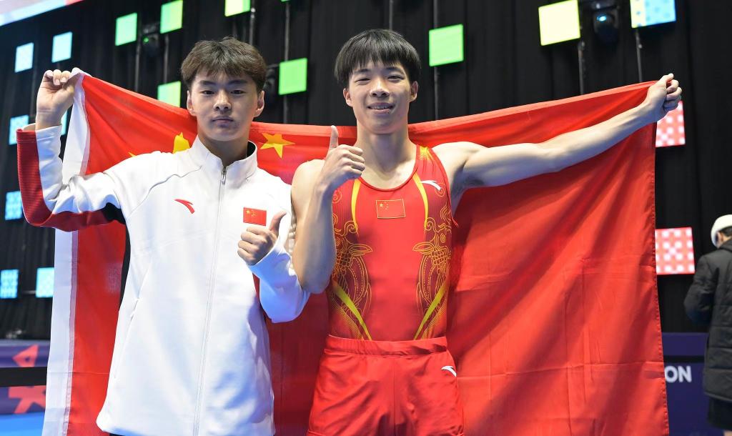 11月12日,王梓賽(左)與嚴(yán)浪宇在賽后合影。圖片來(lái)自國(guó)際體操聯(lián)合會(huì)官方社交媒體賬號(hào)