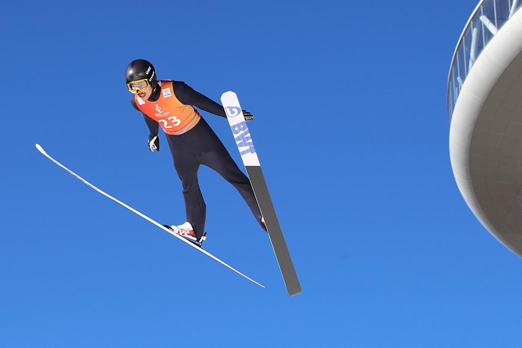 在北京冬奧會(huì)上實(shí)現(xiàn)中國(guó)北歐兩項(xiàng)“冬奧首秀”的趙嘉文,在一眾國(guó)內(nèi)頂尖選手中依然足夠閃光。幾場(chǎng)比賽中,他的跳臺(tái)成績(jī)遠(yuǎn)遠(yuǎn)甩開(kāi)其他選手,越野滑雪也能躋身前列,“一跳一滑”綜合能力出眾。