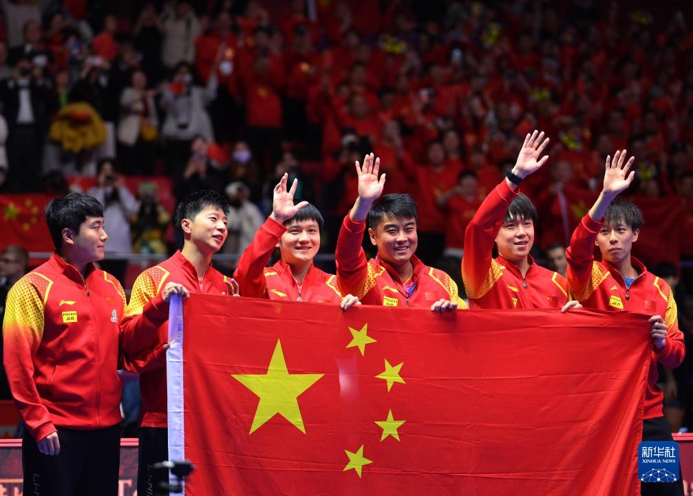 新華社韓國釜山2月25日電(記者譚暢、蘇斌、馮亞松)發(fā)球得分,成功衛(wèi)冕!馬龍左手握拳,右手輕擊臺(tái)面,用一種稍顯內(nèi)斂的方式慶祝自己的第九個(gè)世乒賽團(tuán)體賽冠軍,并與世錦賽舞臺(tái)告別。25日晚,2024年釜山世界乒乓球團(tuán)體錦標(biāo)賽男團(tuán)決賽中,中國隊(duì)以3:0戰(zhàn)勝法國隊(duì),實(shí)現(xiàn)世乒賽11連冠。這也是中國男隊(duì)第23次捧起斯韋思林杯。