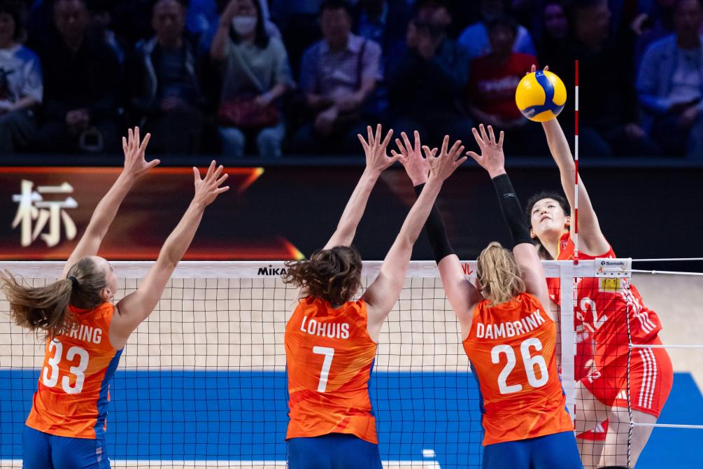首局比賽中國(guó)隊(duì)失誤較多,荷蘭隊(duì)取得13:6的領(lǐng)先。中國(guó)隊(duì)請(qǐng)求暫停后迅速調(diào)整狀態(tài),一度將分差縮小至3分,但最終還是以21:25告負(fù)。第二局,中國(guó)隊(duì)在開局落后的情況下依靠多點(diǎn)進(jìn)攻在后半段反超比分,以25:23扳平大比分。士氣大振的中國(guó)女排在接下來(lái)的比賽中掌握了主動(dòng),進(jìn)攻更加積極,以25:23、25:21連下兩局贏得勝利。
