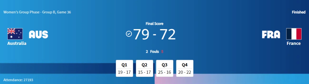 中新網(wǎng)北京8月5日電(記者 劉星晨)北京時間5日凌晨,巴黎奧運(yùn)會女籃小組賽全部結(jié)束。在最后一場比賽中,澳大利亞女籃79:72戰(zhàn)勝東道主法國女籃。本場取勝后,澳大利亞女籃以2勝1負(fù)的戰(zhàn)績出線。