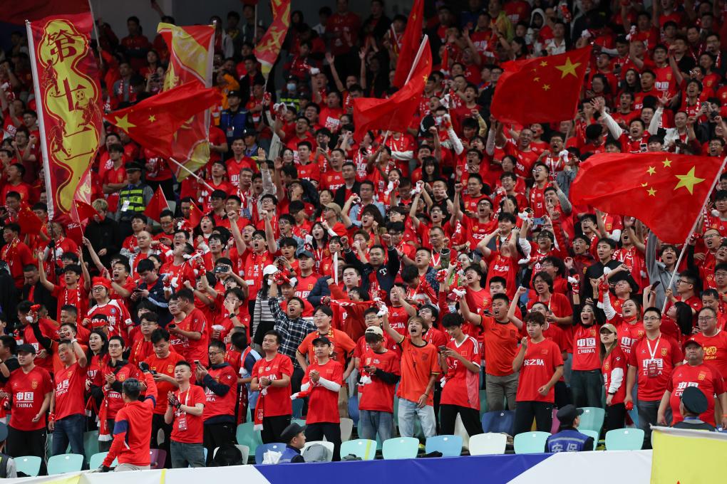 11月19日,球迷慶祝中國(guó)隊(duì)進(jìn)球。當(dāng)日,在福建廈門舉行的2026美加墨世界杯亞洲區(qū)預(yù)選賽18強(qiáng)賽第六輪比賽中,中國(guó)隊(duì)主場(chǎng)對(duì)陣日本隊(duì)。新華社記者 胡星宇 攝