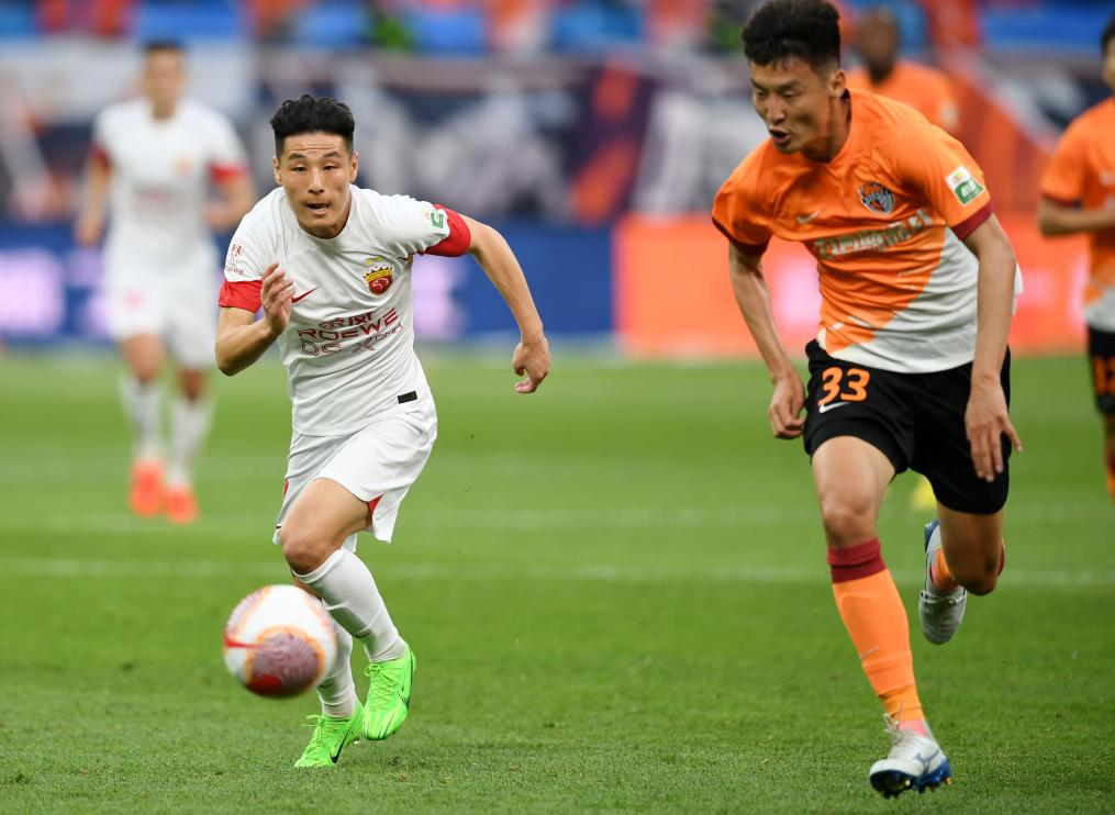 5月1日,上海海港隊(duì)球員武磊(左)在2024賽季中超第九輪比賽中帶球突破。新華社記者 李紫恒 攝