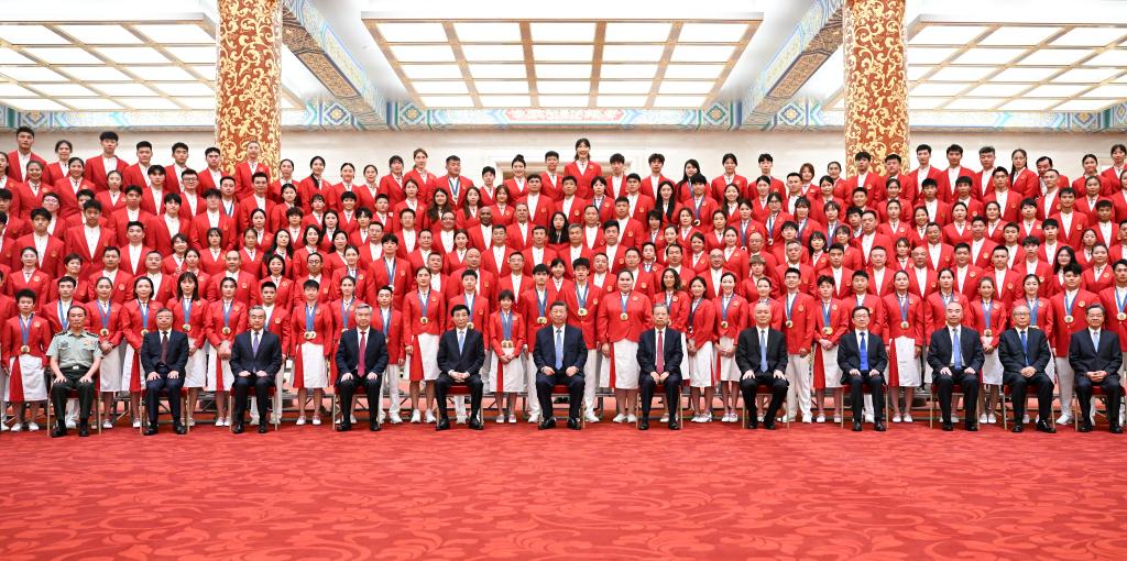 8月20日,中共中央總書記、國(guó)家主席、中央軍委主席習(xí)近平在人民大會(huì)堂接見第33屆夏季奧林匹克運(yùn)動(dòng)會(huì)中國(guó)體育代表團(tuán)全體成員并發(fā)表重要講話。他表示,中國(guó)體育代表團(tuán)的優(yōu)異成績(jī),既是我國(guó)體育事業(yè)發(fā)展進(jìn)步的集中體現(xiàn),也是中國(guó)式現(xiàn)代化建設(shè)成就的一個(gè)縮影,充分彰顯了新時(shí)代中國(guó)力量。