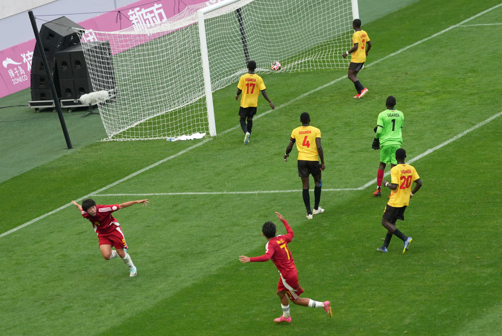 2024年5月26日,中國男子一隊球員劉誠宇(左一)慶祝進球。當日,2024年國際中體聯(lián)足球世界杯賽落幕。中國男子一隊和中國女子二隊分別戰(zhàn)勝烏干達男子一隊和肯尼亞女子隊,雙雙奪冠。新華社記者 李鋼 攝