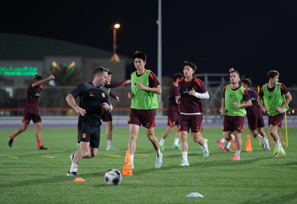 3月18日,中國國家男子足球隊在沙特阿拉伯首都利雅得進行賽前訓練。新華社記者 王東震 攝