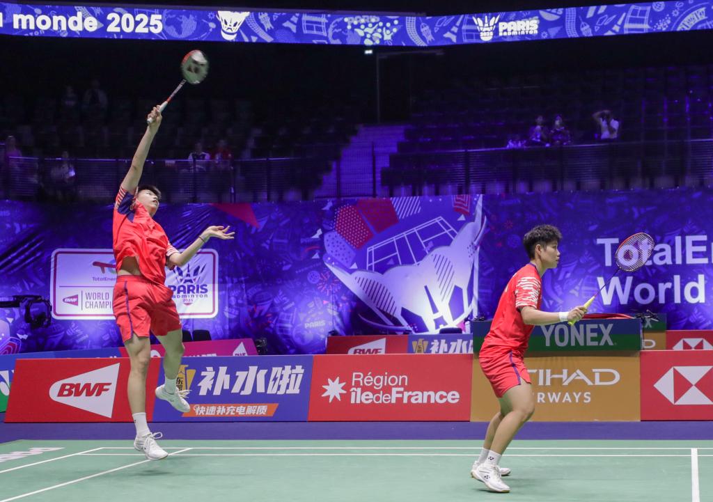 8月27日,中國組合馮彥哲(左)/黃東萍在比賽中。新華社記者 張帆 攝
