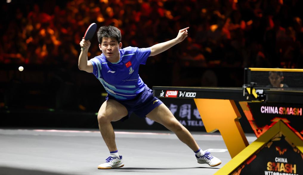 9月29日,林詩(shī)棟在比賽中回球。新華社記者 王楷焱 攝