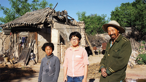 晏村是個(gè)有300多戶、3000多口人的村子,地勢高低不平,生活條件好些的村民搬遷到了城里或是村頭較為平整的地方居住了,留在村里的大部分是老人和小孩子。沿著彎彎曲曲、高低起伏的水泥路左拐右轉(zhuǎn),是宿香玲一家暫時(shí)寄居的地方——她故去叔叔的家。院子里也是幾間破舊的房子,屋內(nèi)墻壁、灶臺、土炕都是黑乎乎的,沒有一件像樣的家具,順著墻根有七八個(gè)大塑料袋,里面分別放著衣服和一些食用物品,宿香玲說,這些都是好心人和志愿者捐助的,這就是宿香玲家的全部家當(dāng)。