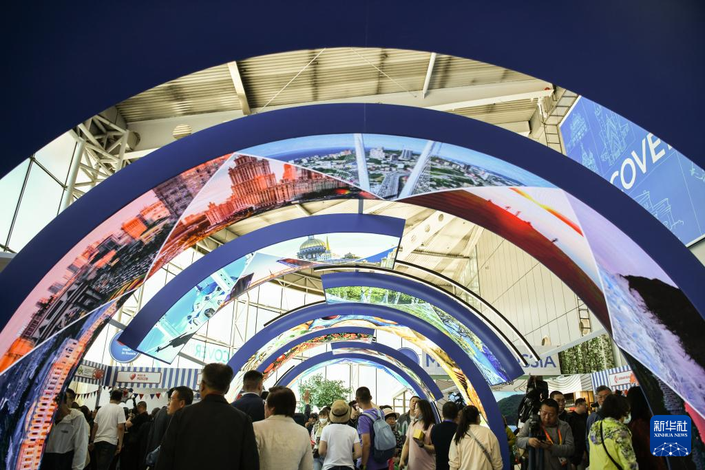 5月18日,人們走進(jìn)在哈爾濱國際會(huì)展中心舉行的第八屆中俄博覽會(huì)展館。新華社記者 王松 攝