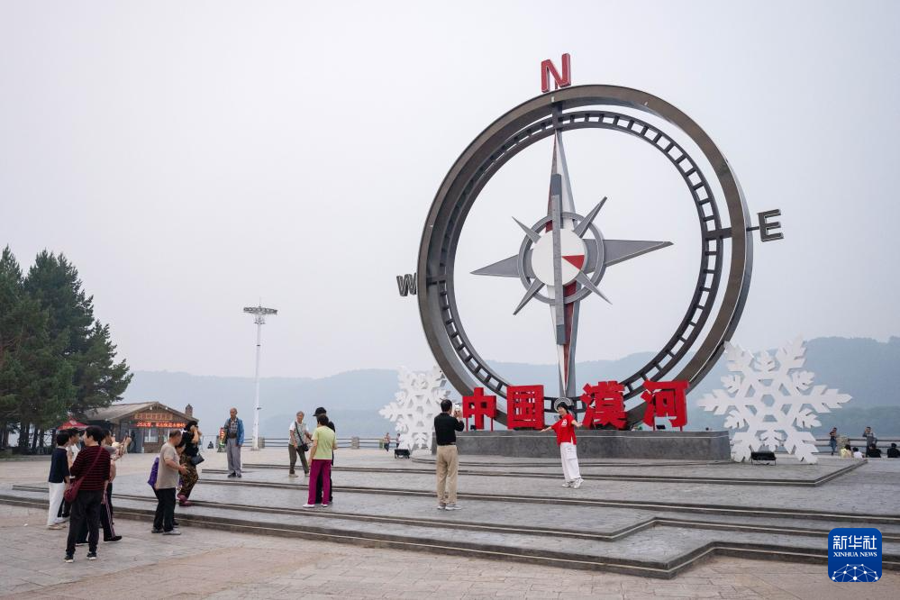 游客在漠河市北極村景區(qū)內(nèi)游玩、拍照(7月1日攝)。新華社記者 謝劍飛 攝