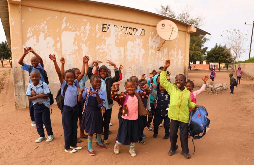 2023年7月25日,莫桑比克馬普托省皮科科村學(xué)校的孩子們站在裝有中國(guó)援助的衛(wèi)星電視接收天線的房屋前。“萬村通”項(xiàng)目旨在為非洲國(guó)家的1萬個(gè)村莊接入衛(wèi)星數(shù)字電視信號(hào),項(xiàng)目2018年在莫桑比克啟動(dòng),為該國(guó)1000個(gè)村落、2萬戶家庭和3000個(gè)公共場(chǎng)所安裝衛(wèi)星電視設(shè)備,提供電視信號(hào)和節(jié)目,覆蓋農(nóng)村人口達(dá)250萬。新華社記者 董江輝 攝