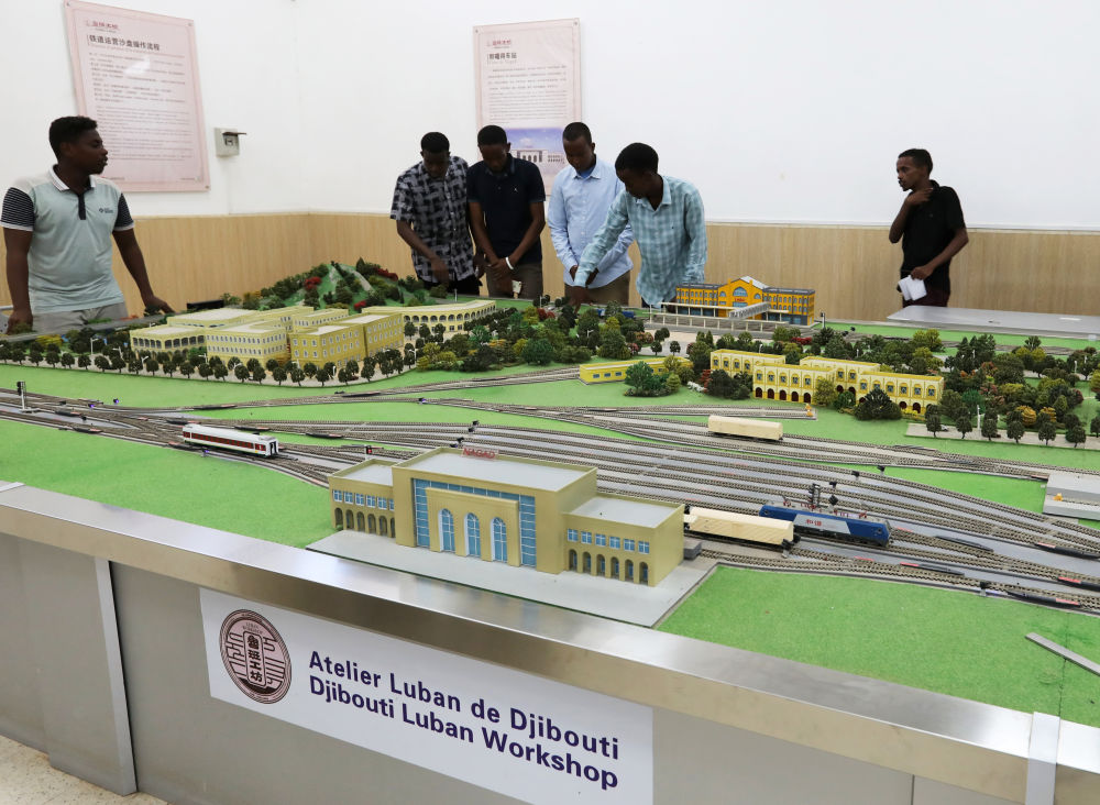 2022年9月19日,在位于吉布提首都吉布提市的吉布提工商學(xué)校,學(xué)生在魯班工坊鐵道運(yùn)營(yíng)沙盤教學(xué)區(qū)學(xué)習(xí)。新華社記者 董江輝 攝