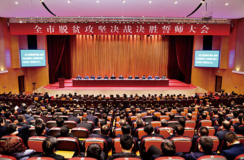 圖為全市脫貧攻堅(jiān)決戰(zhàn)決勝誓師大會(huì)會(huì)場(chǎng)。本報(bào)記者 劉紀(jì)森 攝