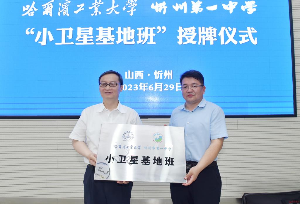 在隨后舉行的授牌儀式上,朱曉東強調(diào),哈爾濱工業(yè)大學“小衛(wèi)星基地班”為忻州籍學子提供了一個接觸哈爾濱工業(yè)大學、了解哈爾濱工業(yè)大學、體驗哈爾濱工業(yè)大學的優(yōu)勢平臺。希望通過“小衛(wèi)星基地班”精心設置的課程活動,助力更多優(yōu)秀學子明確定位、開拓視野、篤定名校,為忻州乃至全省創(chuàng)新人才培養(yǎng)模式、提高人才培養(yǎng)質(zhì)量、激發(fā)更多教育引領(lǐng)的前瞻思維,讓“小衛(wèi)星”傳遞“大能量”。希望忻州一中能夠以哈爾濱工業(yè)大學“小衛(wèi)星基地班”授牌儀式為新起點、新標桿,提升辦學育人的更高境界,培養(yǎng)更多具有國際視野、家國情懷、創(chuàng)新思維、攻堅能力的未來領(lǐng)軍人才,讓“小衛(wèi)星”塑造“大格局”。希望哈爾濱工業(yè)大學能夠把創(chuàng)新成果轉(zhuǎn)化到忻州,把創(chuàng)新事業(yè)布局到忻州,把新方案、新模式、新場景、新思路實踐到忻州,打造市校合作的更多亮點,讓“小衛(wèi)星”引領(lǐng)“大發(fā)展”。